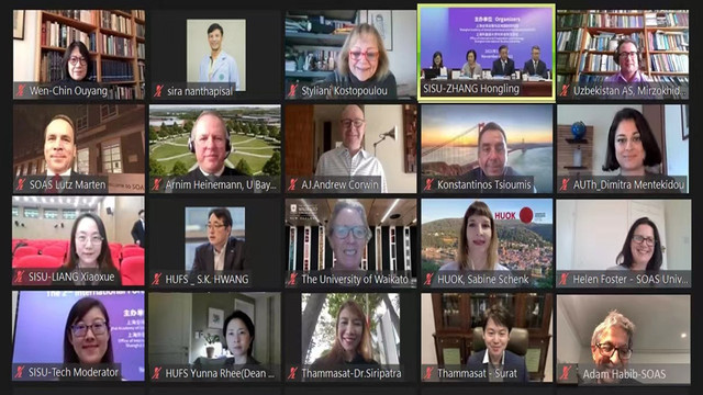 下半场国际合作交流论坛的目的在于促进与重点合作伙伴之间的交流互鉴。与会高校分别介绍了各自在区域国别研究领域的特色项目,包括希腊萨洛尼卡亚里士多德大学的全球学习暑期学校、德国海德堡大学的跨文化传播特色项目、墨西哥蒙特雷科技大学的冬季/夏季暑期项目、德国拜罗伊特大学的跨学科非洲研究硕士项目、新西兰怀卡托大学的太平洋和土著文化研究项目等。此外,各高校领导及外事处处长还围绕 “新冠疫情下推进区域国别研究领域国际合作:思考与实践”议题进行了讨论交流,如泰国国立法政大学副校长Surat Teerakapibal分享了在国际合作伙伴拓展及维护等方面的经验;韩国外国语大学国际处处长Yunna Rhee则介绍了后疫情时代所制订的国际合作战略计划。