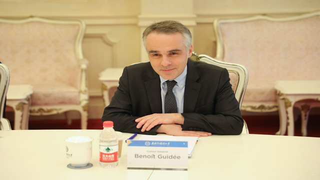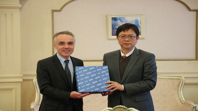 12月15日下午,法国驻沪总领事纪博伟(Benoit Guidee)先生一行到访上外。李岩松校长热情接待了法方来宾。宾主双方就中法高校发展与合作、第四届“中欧对话”活动等主题进行了交流。