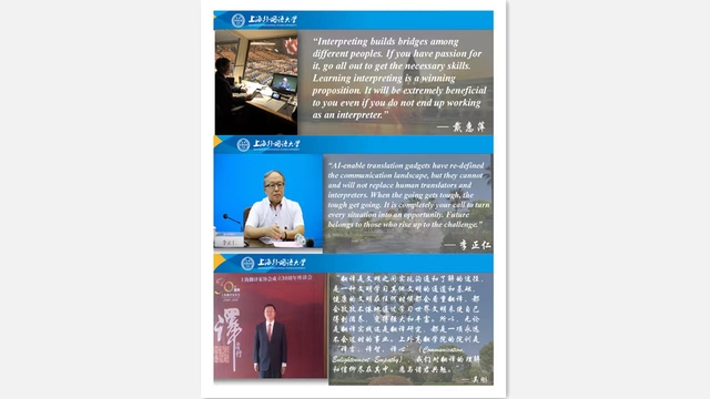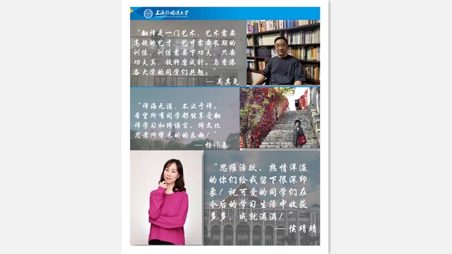研修班最后一天,同学们进行了研修成果汇报,分享了两周以来的研修学习心得。来自香港大学的周美雪同学的汇报道出了多数学生的心声,认为这次学习既增长了翻译理论知识,也提升了翻译实践能力,还体验了沪港两地翻译教学的异同,获益匪浅。在结业仪式最后,给同学们放映了由各位授课老师送上的精心准备的寄语。这些寄语既是各位老师对同学们的期许,更是老师们多年从事翻译相关工作的经验之谈,弥足珍贵。其中来自高翻学院的戴惠萍教授就提到他的寄语就是自己从事口译工作四十余年的心得体会,希望同学们坚持初心,但行好事、莫问前程,心之所向、无问西东。并期待疫情之后同学们能来到上外,开展面对面的交流学习。