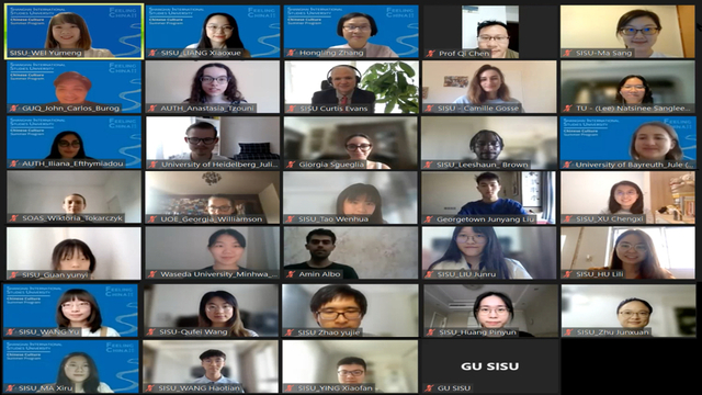 在开幕环节,全体学员们在线观看了视频,领略到上外“向上向外”、包容开放的校园氛围及往年中国文化暑期项目的精彩瞬间。之后,学员们通过有趣的破冰游戏及简短而生动的自我介绍增进了彼此之间的互动与了解。尽管来自14个不同的国家,所学专业从哲学、法律、教育、语言学到国际政治、经济管理、媒体、物理学,同学们都表达了对中国文化的浓厚兴趣以及对本次项目的热情期待。