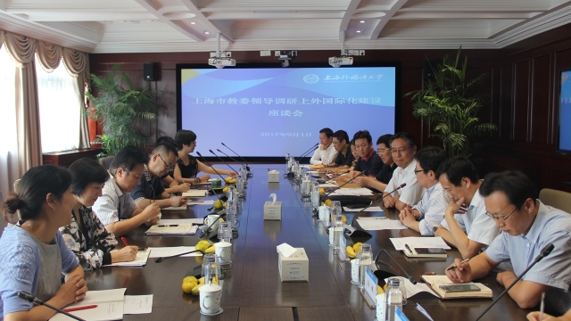 9月1日下午,上海市教委副主任李永智率领国际交流处、人事处、财务处等处室负责人到上海外国语大学虹口校区调研国际化建设相关工作。校党委书记姜锋、校长李岩松、副校长杨力和相关职能部门负责人出席座谈会。