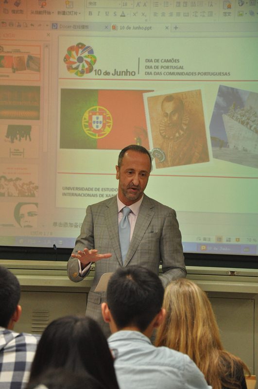 68日上午10点,葡萄牙驻沪总领事João Pedro Fins do Lago先生来访我校并出席了由西方语系葡萄牙语教研室组织举办的葡萄牙日庆祝活动。