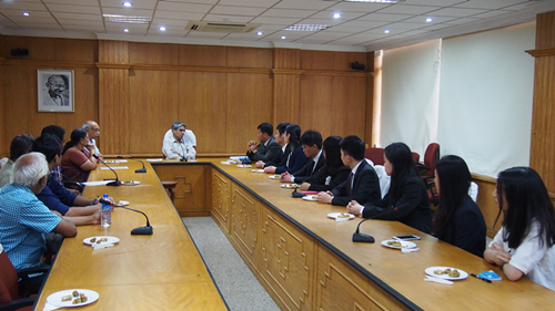 印度理工学院(Indianinstitute of technology,简称IIT),在学术界具有世界声誉,被称为印度“科学皇冠上的瑰宝”,是印度最顶尖的教育与研究机构。BhaskarRamamurthi校长代表印度理工学院对上海外国语大学师生的到访表示欢迎,并对郭树勇院长推进两校合作的努力表示感谢。郭树勇简要介绍了上外国关学院教育教学改革发展情况及高端涉外型人才的培养理念和举措,并希望以此次上外师生的出访为契机,拓展两校在中国学研究和“一带一路”区域研究等领域的合作,深入落实短期留学生交换项目和博士人才联合培养等项目的具体合作。印度理工大学拟与上海外国语大学建立密切的合作关系,推动双方学生的国际化培养。