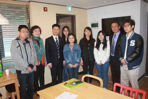 在韩国期间,张峰一行先访问了诚信女子大学,会见了沈和珍校长。双方梳理了“中日韩亚洲校园计划”之2014暑期交流项目的方案和前期准备工作,并商谈了两校其他师生交流计划。两位领导殷切期待,两校学生在今夏的暑期项目中充分展示各自的未来领袖潜质,深入交流互动。随后,张副校长一行专程前往诚信女大为暑期项目学生预订的学生公寓,考察了接待和生活设施。期间,张副校长还看望了正在诚信女大留学的我校学生,勉励他们充分利用宝贵的留学机会,精心打磨语言技能,加深理解韩国社会文化。