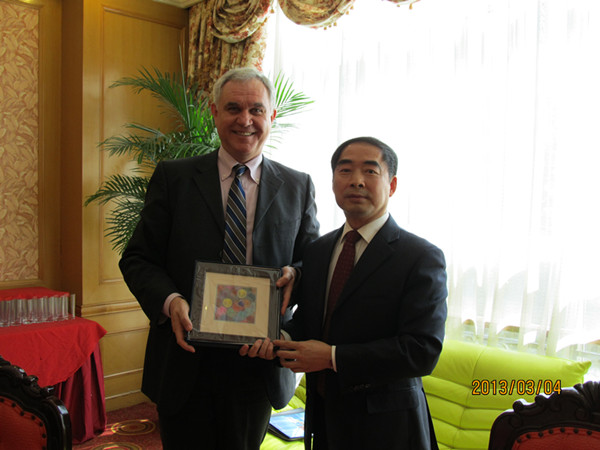 3月4日,肯特州立大学主管国际事务的副校长马尔切洛·梵东尼博士、工商管理学院院长斯派克博士和中国代表处主任张曦一行三人来访我校。冯庆华副校长亲切会见并宴请了梵东尼博士一行。