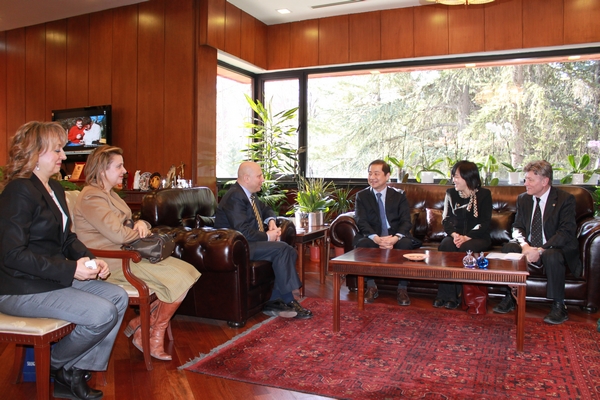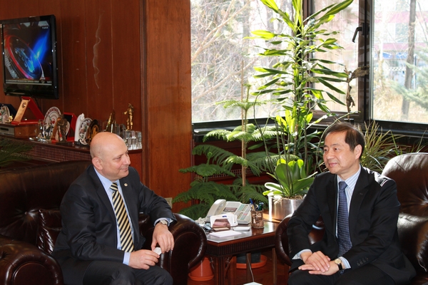 在土期间,曹德明校长另于2013年1月21日应邀访问了土耳其尤努斯•埃姆雷研究院,与该机构主席Hayati DEVELI教授进行会谈。会谈中曹校长感谢尤努斯•埃姆雷研究院在教师和图书资料方面对于我校的支持,希望在学术研究、学者交流等方面我校与研究院开展更加深入具体的合作。尤努斯•埃姆雷研究院主席DEVELI教授表示今后将继续支持我校的土耳其语教学,希望与我校在语言文化领域加深合作。