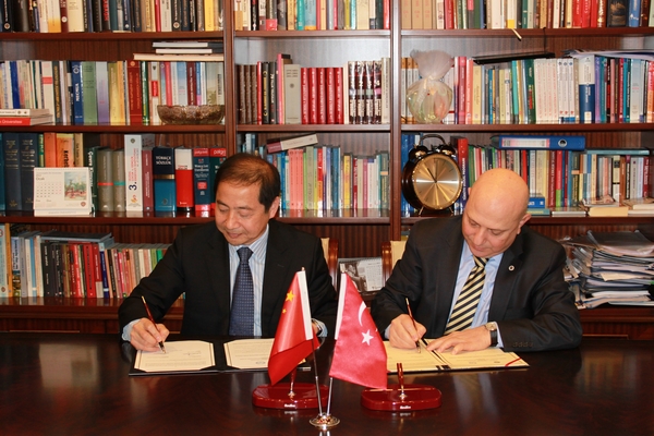 2013年1月22日,我校校长曹德明教授率上外代表团访问土耳其著名学府安卡拉大学(Ankara University),并与该校校长Erkan IBIS教授签署两校合作框架协议。