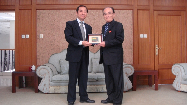 曹校长对金荣晃院士来访表示欢迎。他向朝鲜客人简要介绍了我校建校发展历史、办学规模、学科设置与国际交流合作情况。他强调,我校一方面继续保持语言学习的传统优势,同时也加强培养学生的国际视野,目前与250多个外国大学、机构和国际组织建立了合作关系,贯彻实施国际化办学理念。曹校长还特别向金荣晃院士介绍了我校朝鲜语系的情况。朝鲜语系虽然建立时间不长,但发展势头良好,市场受欢迎程度高,除了对学生进行人文、语言教育,还重点培养学生对语言对象国的文化和国情的了解。曹校长希望通过金院士的来访,能够积极推动金日成综合大学与上外的交流,探讨进一步深化合作的可能。