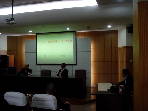 金日成综合大学位于朝鲜民主主义人民共和国的首都平壤市,是朝鲜大学教育的最高学府和培养民族干部的中心基地。该大学成立于1946年10月1日,现有大学生1.2万人、博士生850人、教师和研究员2000多人,学位获得者中包括院士、预备院士、博士200多人,共计1000多人。此次来访的金荣晃院士是朝鲜七位院士之一。