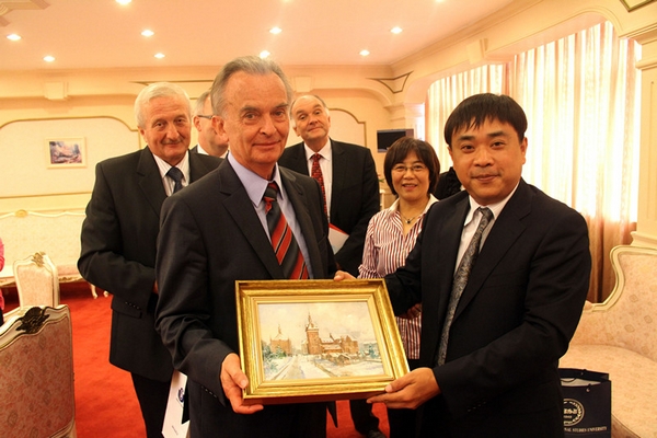 波兰格但斯克大学校长Bernard Lammek对上外校领导的热情接待表示了感谢。他介绍说,格但斯克大学是波兰顶级大学之一,现任波兰总理等众多政要及企业家都是这所大学的毕业生。格但斯克大学有11个系和50个专业,很多院系专业都进行全英语授课。他说,上海与格但斯克早在1985年就缔结协议成为友好姐妹城市,双方具有良好的合作传统。此外,双方均为沿海城市,在很多方面都有相似之处。格但斯克大学将于明年成立中文系,如果可能,还可以筹建成立孔子学院。他希望能就这些项目与我校展开合作,并得到上外的大力支持。