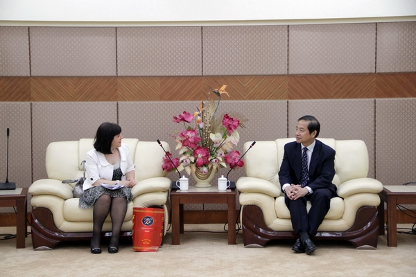 曹校长首先欢迎Irina Beleva女士访问我校。接着,他简要介绍了我校的建校历史、院系构成、学科优势等基本情况。他说,我校已经从最初的俄文专科学校,发展成一所培养涉外型、复合型外语人才的多科性、国际化、高水平特色大学,形成了以语言文学类学科见长,文、教、经、管、法等五大门类协调发展的学科格局。他强调,我校一直以来非常注重对外交流与合作,已经与国外200多所高校、国际组织及科研机构建立了交流与合作关系。我校也重视培养学生的国际化视野,鼓励学生赴海外学习、实习。