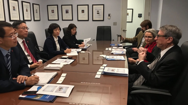代表团在乔治•华盛顿大学访问期间,会见了国际事务副校长Donna Scarboro、Elliott国际事务学院高级顾问Edward A.MacCord以及 Sigur亚洲研究中心主任Benjamin D.Hopkins等人,双方就现代大学治理、欧亚文明研究生实验项目合作、卓越学院、中国学与中东研究等问题进行了认真的交流,增进了相互的了解和友谊。