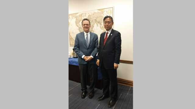 出访期间,姜锋一行拜会了中国驻美国大使崔天凯校友,驻加拿大使馆公使韩涛校友、教育公参杨新育,驻纽约副总领事赵宇敏、教育公参徐永吉。姜锋书向崔天凯等同志介绍了上外学习贯彻习近平新时代中国特色社会主义思想和十九大精神等情况、上外近年来改革发展情况以及重点拓展北美地区国际合作项目的主要考虑和进展等,得到了积极肯定和支持。崔天凯校友听到上外和上外附中近年来的发展感到十分高兴,他对于母校培养区域国别和国际组织人才的做法表示高度认可,建议政治学重视中国国际关系理论建设和全球治理研究,同时也希望上外进一步重视发挥校友会的作用。