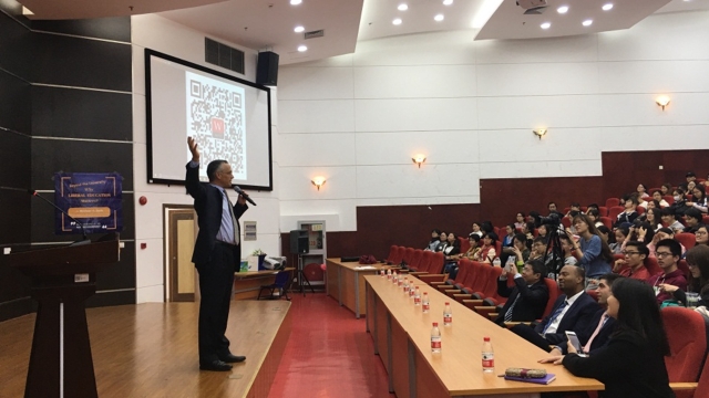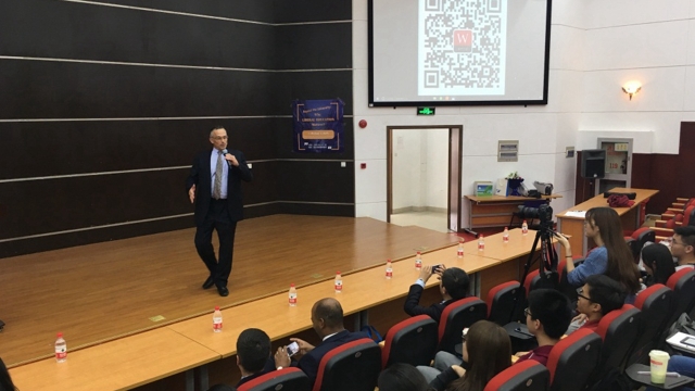 下午1时许,Michael S. Roth校长在图文西厅给上外师生作了题为“博雅教育的价值”(the Value of Liberal Education)的讲座,此次讲座结合了Roth校长的著作《超越大学:博雅教育何以重要》的一些观点。他认为博雅教育的本质就是质疑,质疑可以让学生更好地应对未来世界。讲座中他分别以托马斯·杰斐逊、拉尔夫·沃尔多·爱默生、简·亚当斯和乔布斯为例,阐释了他们对于教育的理解。最后,Roth校长总结说道:“大学教育真正重要的是什么?不只是自我解放、让世界变得宽广、找到与人合作的方式,还需要有改变的能力,能够更好地参与到这个世界中去。”Roth校长的演讲结束后,同学们也深受鼓舞,他们也就这个话题提出了自己的想法。