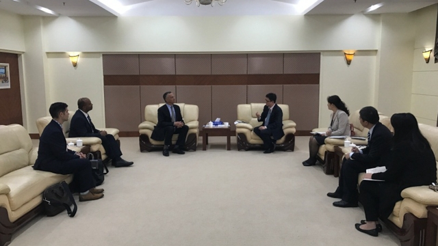 10月19日上午,维思大学(Wesleyan University)校长Michael S. Roth先生访问了上海外国语大学,同行的还有维思大学的副校长Frantz Williams以及维思大学发展部同事Andrew Stuerzel。李岩松校长在松江校区图文中心贵宾厅接待了Roth校长一行。
