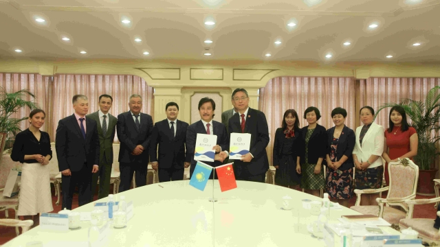 2017年9月25日上午,哈萨克斯坦阿里-法拉比大学校长穆塔诺夫(Galym Mutanov)率8人代表团在哈萨克斯坦驻上海总领事佐齐汉(Kyraubayev Zhoshykhan)的陪同下访问上海外国语大学。