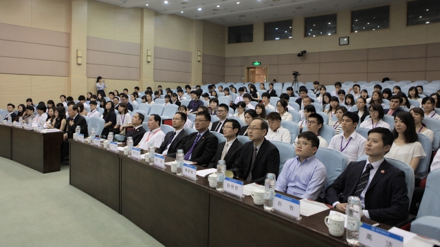 开幕式上,上外日本文化经济学院廉德瑰教授作了“中日文化交流”的主题报告。廉教授通过简要回顾中日两国“2000年的友好、50年的对抗”的历史,引导现场的日本大学生们认识到中日友好是两国长期交往历史中的主流。廉德瑰还重点讲解了中日两国恢复邦交谈判的那段艰辛历史,希望现场的大学生们珍惜今天中日两国来之不易的交流与合作关系。现场的日本大学生们认真倾听了报告,并在结束时报以热烈的掌声。随后,日院学生与日本大学生们进行平行论坛交流,中日两国大学生分别就“全球视野”、“课外阅读”、“创新创业”、“低碳环保”四个议题进行了主题发言和讨论。两国学生们踊跃发言,分论坛现场欢声不断。日院大一徐尧同学在讨论青年创新、创业问题时,还在分论坛会场向日本学生展示了中国时下热门的ofo共享单车,引起了现场日本学生的一片惊叹。在论坛交流结束后的晚餐会环节,我校学生和日本大学生们纷纷走上舞台进行助兴表演,现场掌声、欢呼声此起彼伏。晚宴的最后,中日学生同唱日文歌曲《恋》,将交流活动推行高潮,本次活动圆满谢幕。