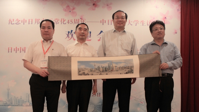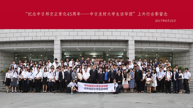 “中日友好日本大学生访华团百名师生上外行”活动是我校受上海教育国际交流协会委托、继今年5月接待“青年友好之船”600名日本青年访华团之后策划的又一重大中日青年交流活动。日本大学生代表团在沪期间还赴复旦大学进行了交流,并在完成上海、苏州两地交流日程后赴京参加了纪念中日邦交正常化45周年“中日大学生千人交流大会”,国务院副总理刘延东出席大会并发表了主旨演讲。