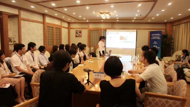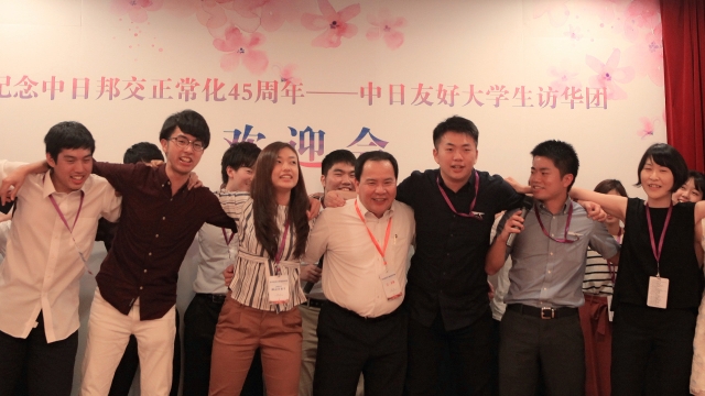为纪念中日邦交正常化45周年,应中国驻日本大使馆邀请,由日本早稻田大学国际部江正殷处长带队、早稻田大学、庆应大学、上智大学等东京及周边地区9所高校约100名大学生组成的“中日友好日本大学生访华团”于8月25日访问我校。校对外合作交流处、校团委和日本文化经济学院共同策划、组织了本次来访期间的交流活动,日本文化经济学院约30名师生参加交流。上海外国语大学副校长冯庆华、中国教育国际交流协会副秘书长宗瓦、上海市教委国际交流处处长杨伟人、校对外合作交流处副处长王征、校青联主席廖文其等出席开幕式及欢迎晚宴,活动由上外日本文化经济学院院长高洁主持。