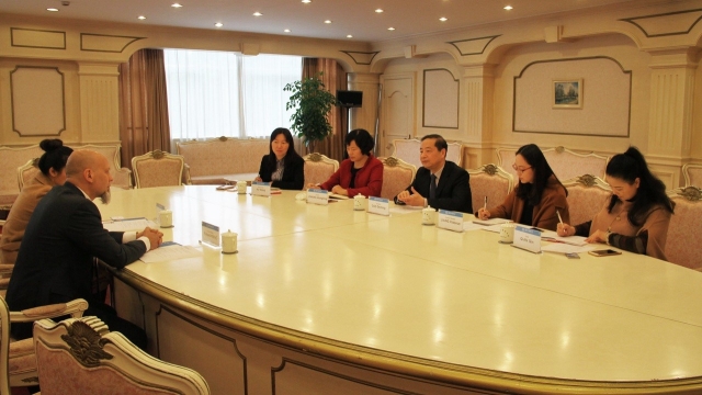 对外合作交流处张红玲处长、梁晓雪,俄语系副系主任许宏、俄语系中东欧语言文化教研室主任钱琴等共同参加了会见。