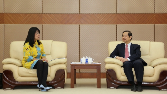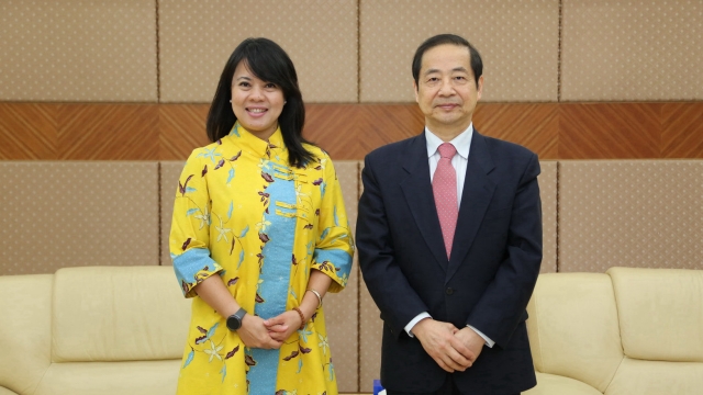 曹德明首先对宁乔恩女士的初次来访表示热烈欢迎,并就我校印尼语专业建设、教学及学生留学等活动中印尼驻沪总领事馆所给予的帮助表示感谢。接着,曹德明向宁乔恩介绍了上外的基本情况、办学特色、学科定位以及国际化办学的情况,并重点介绍了我校印尼语专业的发展状况。他还提出了与印尼相关大学、研究机构拓展合作、共建印尼研究中心的建议,希望得到总领事馆的积极协助。