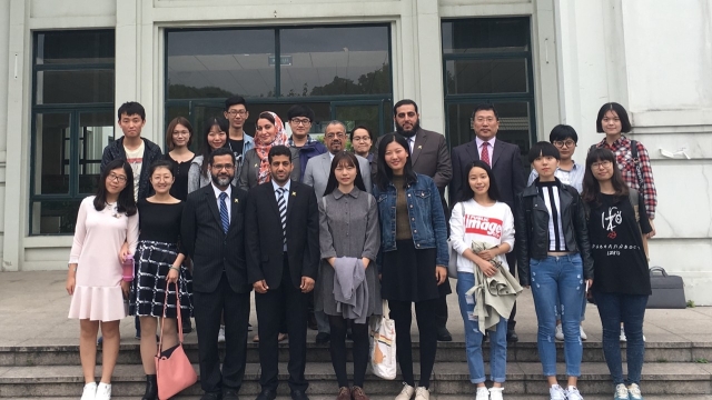 访问虹口校区前,阿曼苏丹卡布斯大学校长阿里在校长助理穆娜殿下、附属医院院长哈利法等陪同下还参观了上外松江校区、东方语学院资料室,并与阿拉伯语系学生进行了座谈。座谈会上,王广大向客人介绍了上外阿拉伯语学科的发展情况。代表团成员向同学们介绍了苏丹卡布斯大学的情况,热情地回答了同学们的提问。最后,阿拉伯语专业的同学们为代表团展示了小提琴演奏、阿拉伯书法和阿拉伯歌曲演唱等才艺,赢得了代表团的阵阵掌声和啧啧称赞。