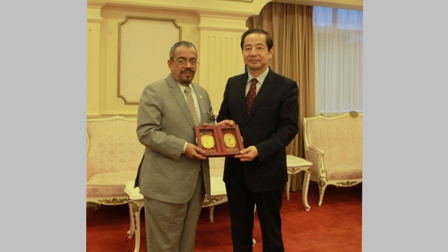 上外国际文化交流学院院长张艳莉、中东研究所所长刘中民、中东研究所名誉所长朱威烈、东方语学院副院长王广大、对外合作交流出副处长王征等参加会见。