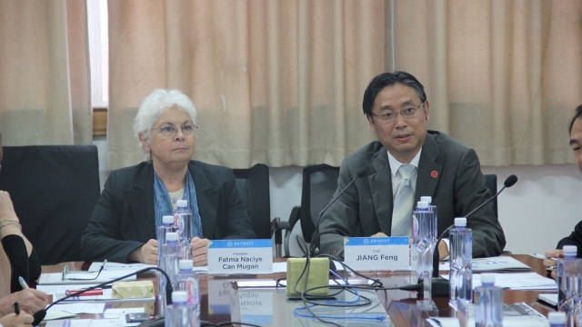 活动伊始,姜锋首先向代表团表示热烈欢迎,并介绍了上外的历史沿革、办学规模和学科特色。他指出,上外确立了建设国别区域和全球知识领域特色鲜明的一流外国语大学的办学方向,正着力培养“多语种+”卓越国际化人才,建设中东研究所、中国国际舆情研究中心等一大批研究中心和新型智库,为政府和社会部门提供智力服务。学校鼓励学生出国交流学习,支持教师与各国高校学者、智库专家和社会人士开展学术交流。随后,法特玛・乌纲女士介绍了代表团的人员组成、访问目的和伊兹密尔经济大学的情况,表达了同上海外国语大学开展合作交流的意愿,促进双方师生及学术交流。