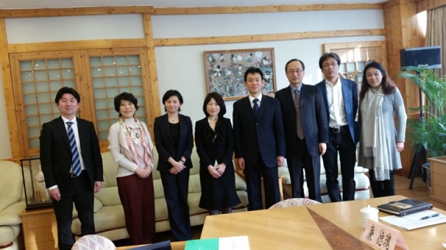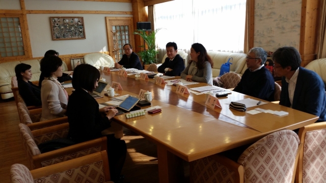 会谈中王有勇处长介绍了我校发展历程,重点介绍了我校作为中国教育部直属重点高校,坚持服务于国家“一带一路”战略,加强对语言对象国的区域与国别研究,并高度重视与国外高端智库的国际学术合作与交流的发展思路。王有勇也介绍了我校中日韩合作研究中心的成立以及首次举办“中日韩与中东关系”国际研讨会的相关情况,并重点介绍了中心今后将着力推进多学科交叉融合、多国别考察视角下的中日韩合作研究,同时发挥我校特色与优势,推进中日韩高端翻译的多语对联合培养、实施中日韩文化精品互译项目、推进中日韩合作研究成果对外宣传等重点发展方向。许慈惠院长对日本文化经济学院的学科发展历程、现有师资力量、教学科研以及国际化合作等做了介绍与交流。