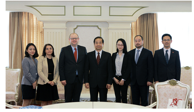 5月10日下午,波兰驻沪总领事彼得·诺沃特尼亚克(Piotr Nowotniak)到访上海外国语大学,曹德明校长在虹口校区会议中心会见了总领事一行,双方就合作共建波兰语专业等事宜进行了深入洽谈。