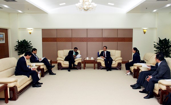 曹德明向2015年底到任的总领事先生介绍了我校的办学特色和发展方向,回顾了我校近年来与印度驻华使领馆和印度教育机构之间的合作办学情况。曹德明说,我校致力于培养具有国际视野的高端人才,为此我们十分注重国际化办学渠道的拓展和模式的探索,迄今我们已与三百三十多家外国知名大学或国际机构建立了密切的合作关系。曹德明表示,我校不仅以外国语言文学教学研究见长,而且在区域国别研究等方面也实力雄厚,拥有中东研究所、欧盟研究中心、G20研究中心等一系列重要研究机构。曹德明强调,中印是近邻,更是两个正在崛起的大国,亟需增进相互了解,为此,我们正在考虑设立印度研究中心,希望得到印方的支持。
