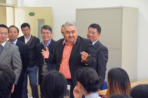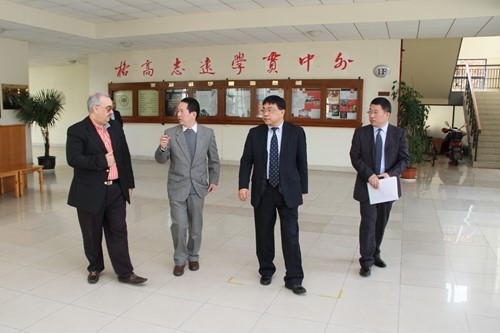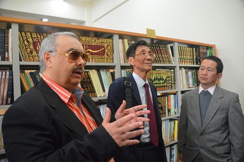 4月8日上午,巴林王室成员谢赫哈利法·本·阿卜杜拉·阿勒哈利法一行对我校进行友好访问。周承副校长在松江校区亲切会见外宾,向他们介绍了我校提出的“多语种+”卓越国际化人才培养战略的实施情况、国家重点学科(培育)阿拉伯语专业和教育部人文社会科学重点研究基地、上海高校智库中东研究所的发展历程和取得的成绩。宾主双方还就合作建立阿拉伯伊斯兰研究中心进行了商讨,并达成了初步意向。会见后,谢赫哈利法参观了东方语学院教学楼、图书资料室,亲切看望了部分阿拉伯语专业学生。中东研究所名誉所长朱威烈教授和丁俊教授、东方语学院副院长王广大教授和陈杰教授、对外合作交流处王征副处长等参加会见。