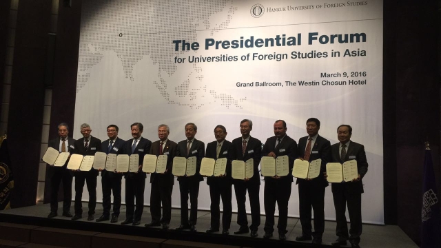 在韩国外国语大学的倡议下,11所外国语大学代表签署了合作协议,亚洲外国语大学联盟宣告成立,成员包括韩国外国语大学、远程韩国外国语大学、釜山外国语大学、大邱外国语大学、东京外国语大学、京都外国语大学、蒙古人文大学、北京外国语大学、上海外国语大学、撒马尔罕国立外国语学院、河内国家大学下属外国语大学。联盟的成立将大大促进亚洲各国外国语大学之间的学术交流与合作。