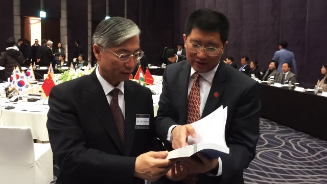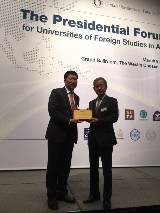 亚洲外国语大学校长论坛由韩国外国语大学主办,来自韩国、中国、日本、越南、蒙古和乌兹别克斯坦等6国的11所外国语大学的校领导出席论坛。中国驻韩国大使、上外校友邱国洪,以及日本、越南和蒙古驻韩大使出席开幕式并致辞。