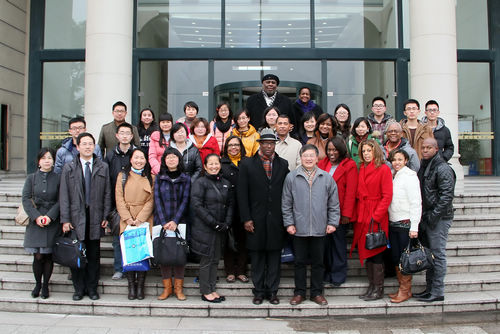 随后,美方代表团成员与上外师生就全美有色人种协进会、黑人领袖马尔科姆·艾克斯(Malcolm X)、奥巴马总统提出的旨在关注美国黑人年轻一代的教育和减少犯罪的倡议“My Brothers Keeper”等大家所关注的话题做了热烈讨论。座谈中,代表团所有成员都积极参与了交流,有的还讲述了感人的亲身经历。一个半小时的座谈热烈融洽,取得了很好的效果。上外同学的精彩提问也得到了美方代表的高度赞扬。最后全体人员在上外图文中心正门合影留念。