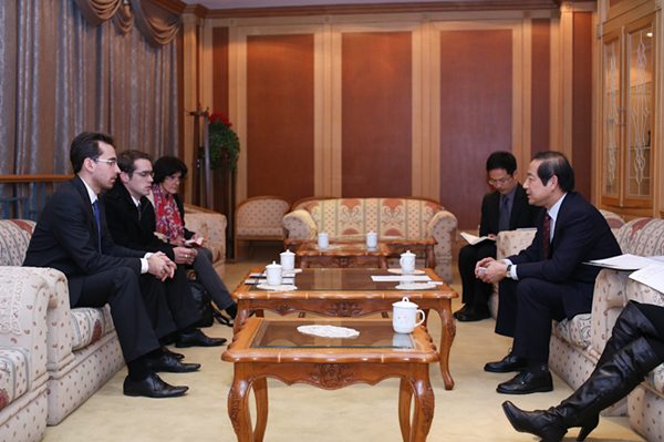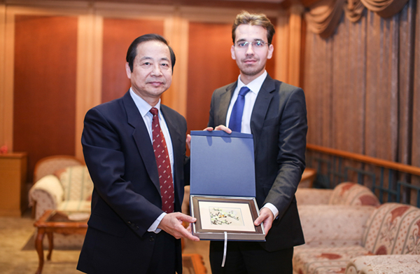 会见时在座的还有匈牙利黑维兹市政府驻华代表乐文特(Horváth Levente),我校对外合作交流处处长助理王征、外国专家科梁晓雪等。