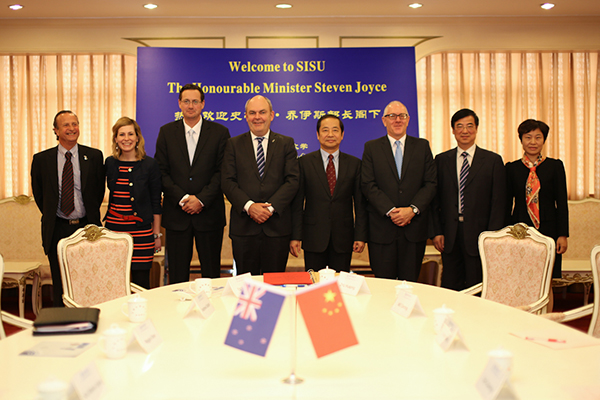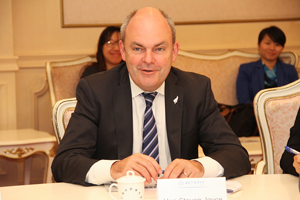 11月12日上午,校长曹德明教授在虹口校区凯旋厅会见了新西兰高等教育、技术及雇佣部部长斯蒂文·乔伊斯(Steven Joyce)阁下一行12人,双方就中新两国高等教育的合作交流等话题进行了亲切的会谈。商务部美大司高宇晟处长陪同到访并参加了会谈。