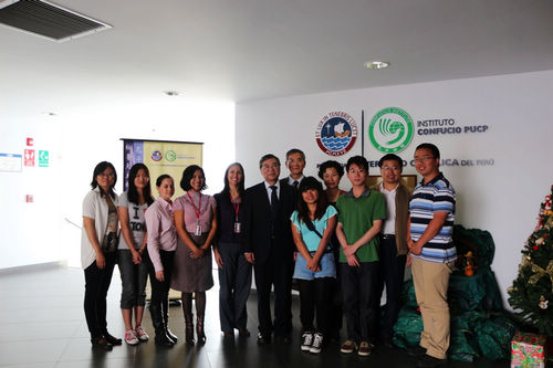 12月11日,我校吴友富书记一行前往秘鲁利马访问秘鲁天主教大学,并参观了秘鲁天主教大学孔子学院。随同到访的有对外合作交流处处长张红玲教授和西方语系主任陆经生教授。