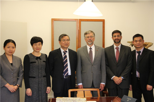 蒙大拿大学校长Royce Engstrom、副校长Perry Brown、国际办公室主任Paulo Zagalo-Melo分别会见上外代表团。会谈中,吴书记介绍了上外发展的三个历史阶段、学科发展特色和优势,以及近年来在区域国别研究和国际化创新型人才培养方面取得的新成就,肯定了两校之间已经建立的深厚友谊和良好信任,希望在合作研究、专业建设、行政培训和教师交流方面取得新的突破。