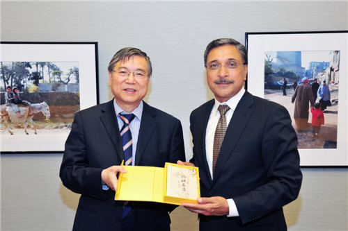 代表团还与蒙大拿大学商学院副院长Michael Harrington、管理学院Nader Shooshtari、教育学院副院长Susan Harper-Whalen、继续教育学院院长Roger Maclean、法学院院长Irma Russell等主要院系负责人分别会见,探讨了在金融专业、会计专业、法律专业、国际政治专业、教育专业等领域展开合作的前景,就“3+2”项目、MBA项目短期交流、教师互派等合作形式进行了深入探讨。上外代表团还参观了该校孔子学院所在的Maureen and Mike Mansfield中心,副主任Otto Koester介绍了中心概况,并向上外赠送了中心创始人、美国著名政治家Mike Mansfield先生访华期间与周恩来总理合影的珍贵照片。