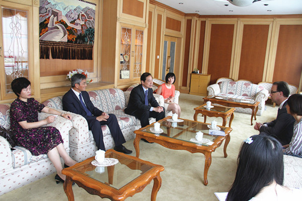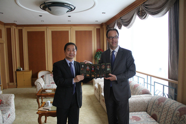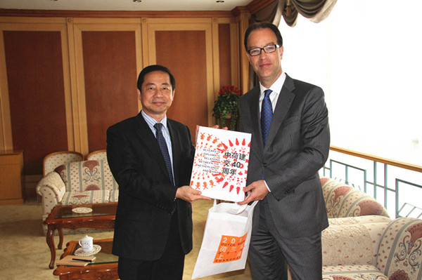 2012年6月14日,荷兰驻上海总领事潘佩德(Peter Poterman)和领馆经济商务处代表林月徽(Christy Lam)访问我校,受到了曹德明校长的热情接待。