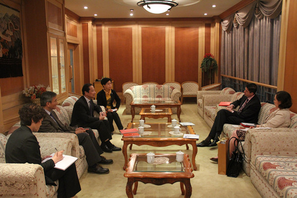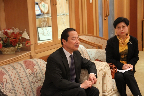 曹校长首先向客人们介绍了我校的概况、办学特色、近年来的发展及国际交流情况,希望双方在业已建立起来的友谊和互信基础上,进一步拓展文化教育领域的合作与往来,搭建高质量、高水准的平台,为中墨两国未来的交流,培养更多的卓越人才。曹校长提出,上外已经与墨西哥哈里斯科州的教育处、瓜达拉哈拉大学以及墨西哥国立自治大学建立了实质性合作项目,目前学校正在筹划推进对拉丁美洲的区域研究。墨西哥领馆拥有众多学术及文化方面的信息来源,希望今后双方能够进一步加强信息渠道的沟通,使上外师生也能享受到更多的优质资源。