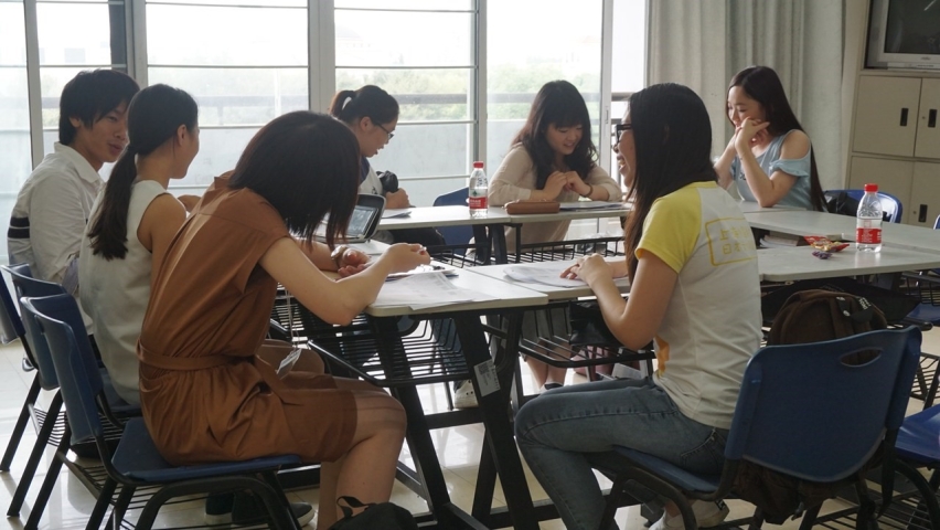 其后,两校同学分成8个讨论小组,各组商定好组长和主题后开始了第三部分的讨论与交流。在欢乐祥和的气氛中,学生们对中日两国的文化、社会等各个方面发表了各自的观点及看法,对当代年轻人的人生观、价值观和理想有了更进一步的了解,在不断的相互学习和交流中找到了将来努力和奋斗的方向。