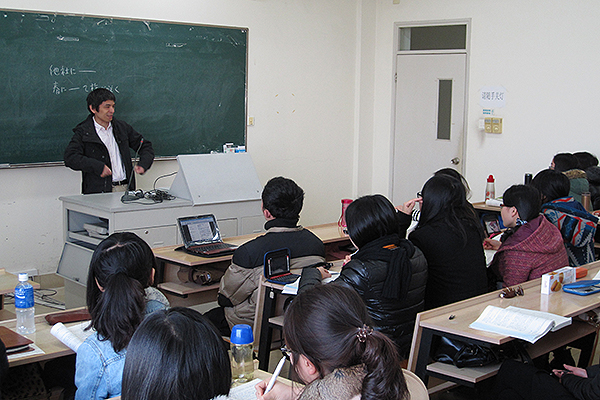 从上一堂课开始,石津老师就从来没有因为教的是中国学生,而疏于备课,相反,他从中国大学生学习日语的实际情况出发,花费大量时间精心查找授课资料,合理安排教学时间,丰富授课课程内容。石津老师在上课时总是由浅入深,循序渐进,学生们总会有茅塞顿开、豁然开朗的感觉。在课堂上讲解时,他针对班上学生的日语水平,从基础日语语言知识入手,放慢语速,一旦发现同学们的脸上露出疑惑的神情,就会不厌其烦地为学生重复,或者换一种更简单的表达方式,直至我们异口同声地发出“噢!”他才会像松了一口气一样和我们一起大笑“なるほどね。”。