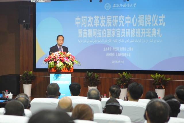 4月20日上午,由外交部、教育部和上海市人民政府共同主办,上海外国语大学承办的中阿改革发展研究中心在上外松江校区揭牌成立。