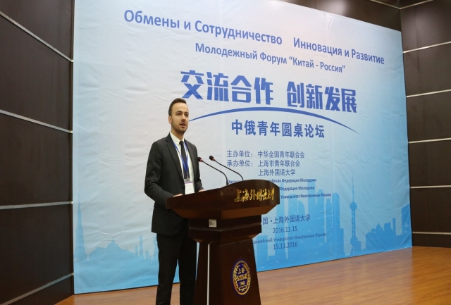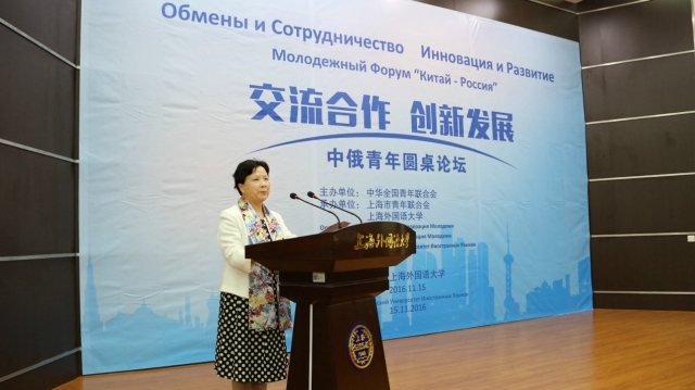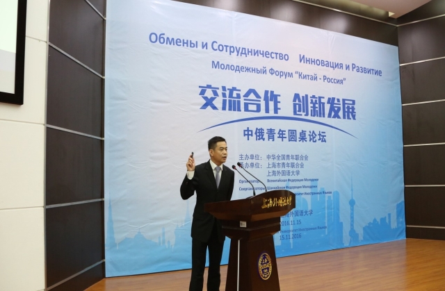 11月15日,“交流合作 创新发展”中俄青年圆桌论坛在上海外国语大学松江校区举行。本次论坛由中华全国青年联合会主办,上海市青年联合会、上海外国语大学承办。俄罗斯青年联盟副主席谢利维尔斯托娃·塔季扬娜,全国青联主席助理、团中央国际部部长万学军,上海市青年联合会主席、团市委副书记王宇以及中俄青年近300人参加了相关活动。