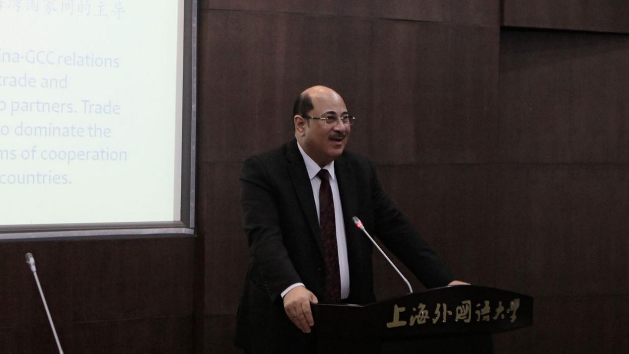 巴林驻华大使、海湾阿拉伯国家合作委员会(海合会)驻华使团轮值使团长安瓦尔·艾勒·阿卜杜拉,外交部前副部长、中国中东学会名誉会长杨福昌,中国前中东问题特使、中阿友好协会副会长吴思科,社会科学文献出版社社长谢寿光,上海外国语大学校长曹德明、副校长冯庆华等出席会议。上外党委书记姜锋在开幕式前与部分与会嘉宾就“一带一路”建设与丝路学研究进行交流。开幕式由上外丝路战略研究所所长马丽蓉主持。