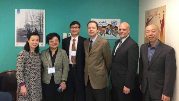 此次访问期间恰逢联合国庆祝中文日。1945年6月26日签署《联合国宪章》时,按照四个联合国创始国的英文字母顺序,中国是第一个在《宪章》上签字的国家。目前,联合国大会、安理会和绝大多数会议均提供中文同声传译,多名上外毕业生目前在联合国担任口译员;联合国文件发行中译本,上外高翻一直为联合国粮农组织、发展署、环境署等组织的会议文件提供中文笔译服务;联合国新闻部还设有联合国中文新闻和中文官方网站、中文微信、微博等社交媒体,上外高翻近年来为新闻部提供中英、中法、中阿英、中西英等语言组合的实习生。张爱玲教授与戴惠萍教授应邀与联合国官员和同事们等一同庆祝了节日。