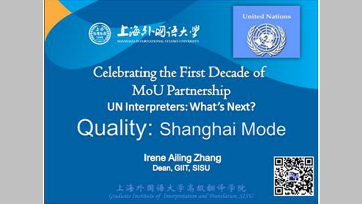2017年4月20日至21日,上海外国语大学高级翻译学院院长张爱玲教授、副院长戴惠萍教授代表上海外国语大学出席了由联合国总部大会和会议管理部在纽约联合国总部主办的第五届联合国合作备忘录签约高校年会。