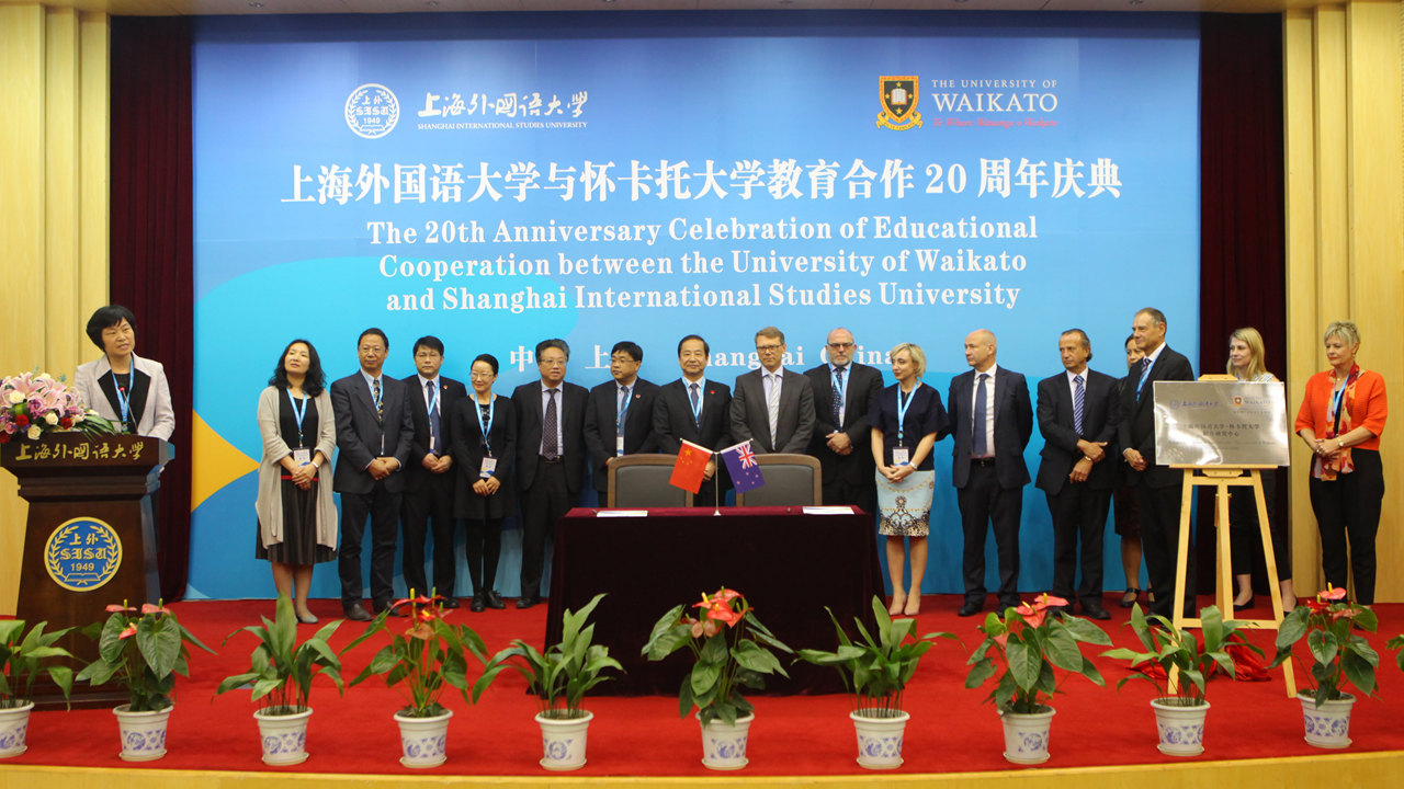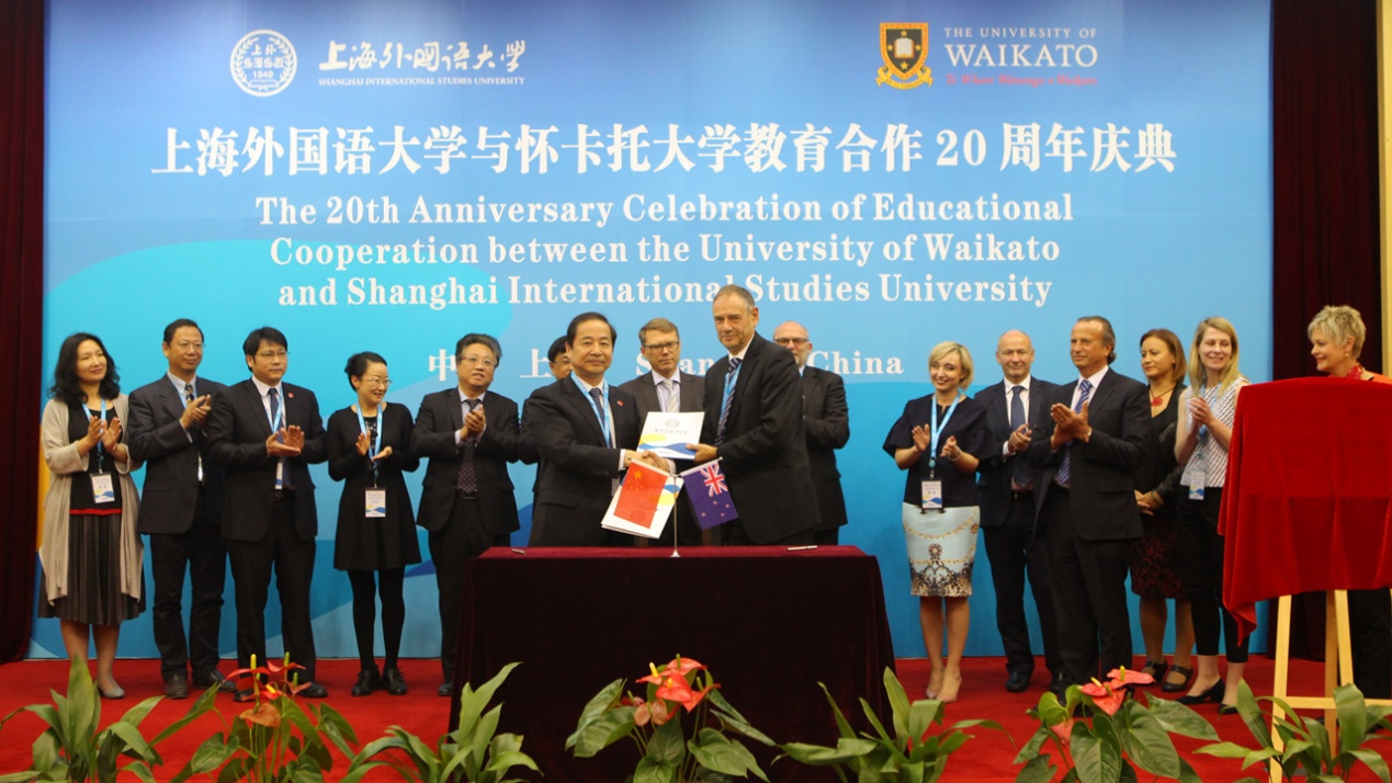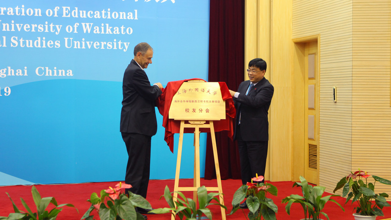2017年5月19日,上海外国语大学与新西兰怀卡托大学教育合作20周年庆典暨上海外国语大学海外合作学院新西兰怀卡托大学项目校友分会成立大会在上外虹口校区举行。